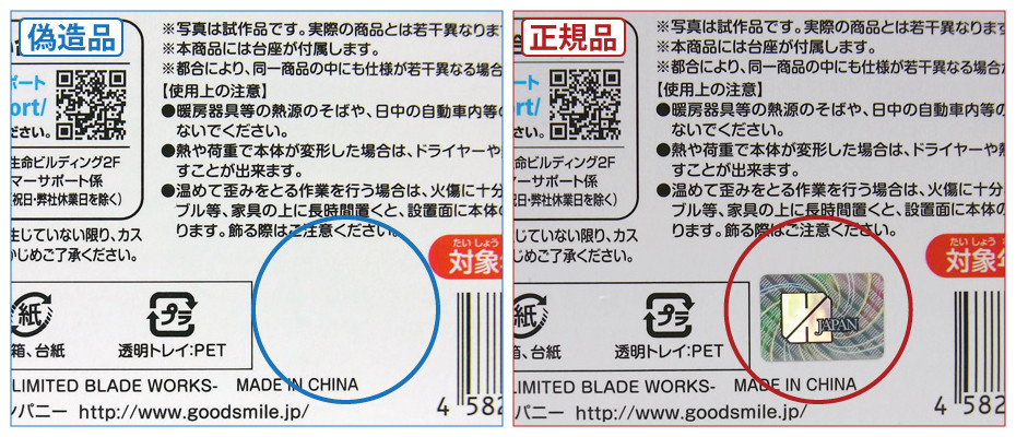 This post aims to help these people by providing an English translation of the Good Smile guide, as well as a quick five-point list of the most important points when trying to spot fakes. Do take note that the items on the left with the red tags are the originals, and the ones on the right with the blue tags are the fakes.