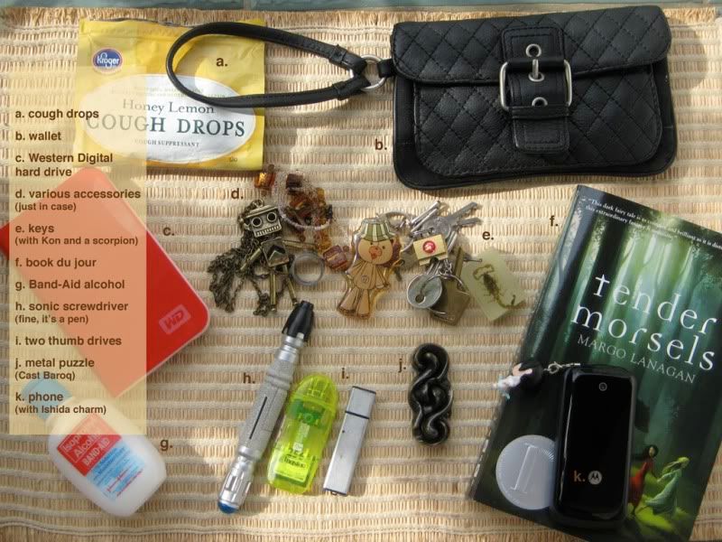 Continuing our Ten Handbags post, we’ve got a couple more girls who very generously shared photos of their bag contents for us to peruse and enjoy. Just like the first set of ten girls, these six ladies are certifiable geeks in their own rights — we have a spec fic writer, several Girl Fridays, and a very talented art director.