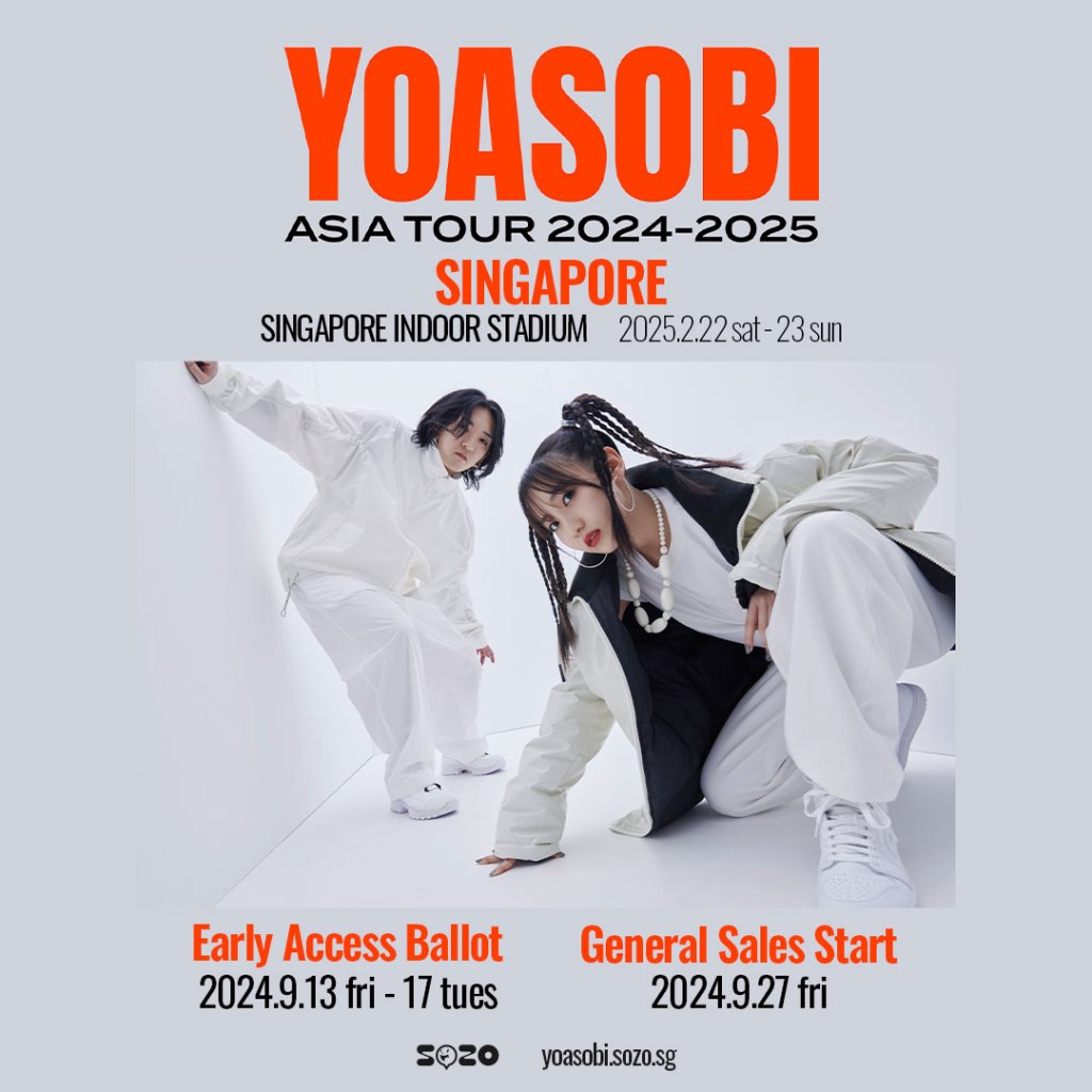 Prepare to race into the night as YOASOBI makes its highly-anticipated return to Singapore for their ASIA TOUR 2024-2025! Organisers announced ticketing details for their upcoming stop in Singapore, which will be held on 22nd and 23rd February 2025.
