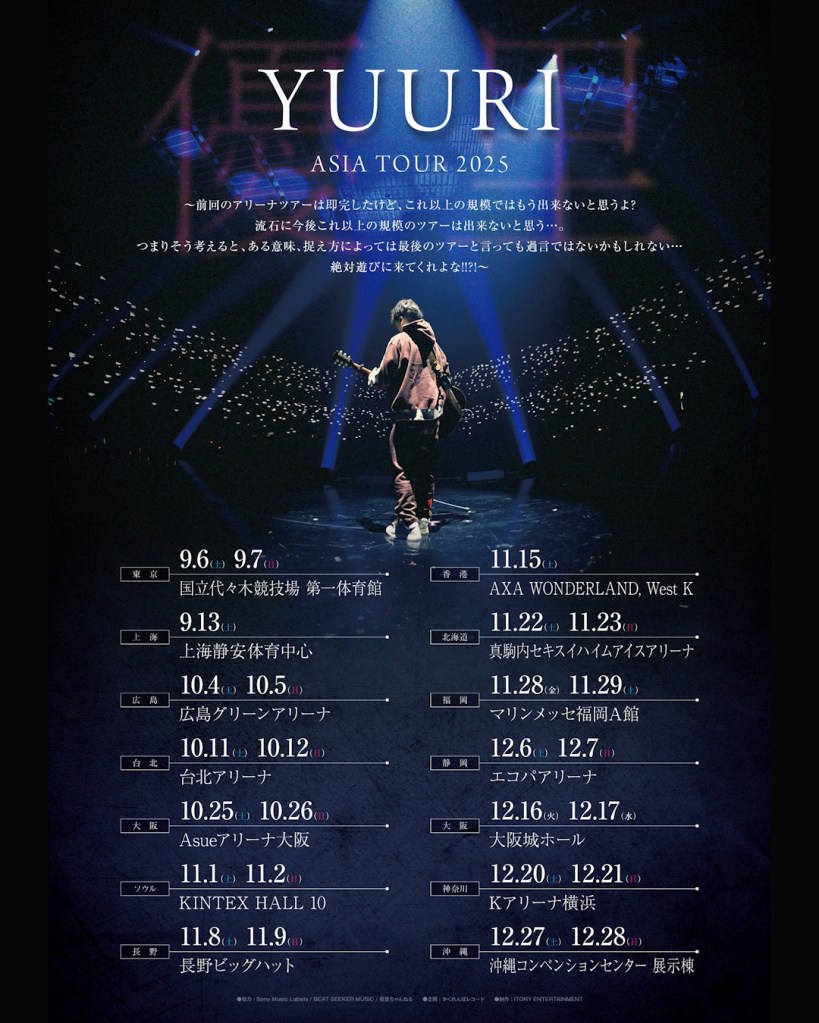 🎟️ Tickets go on sale from 30 June 2025 via KKTIX! Full tour schedule and ticketing details for YUURI Asia Tour 2025 will be announced soon!