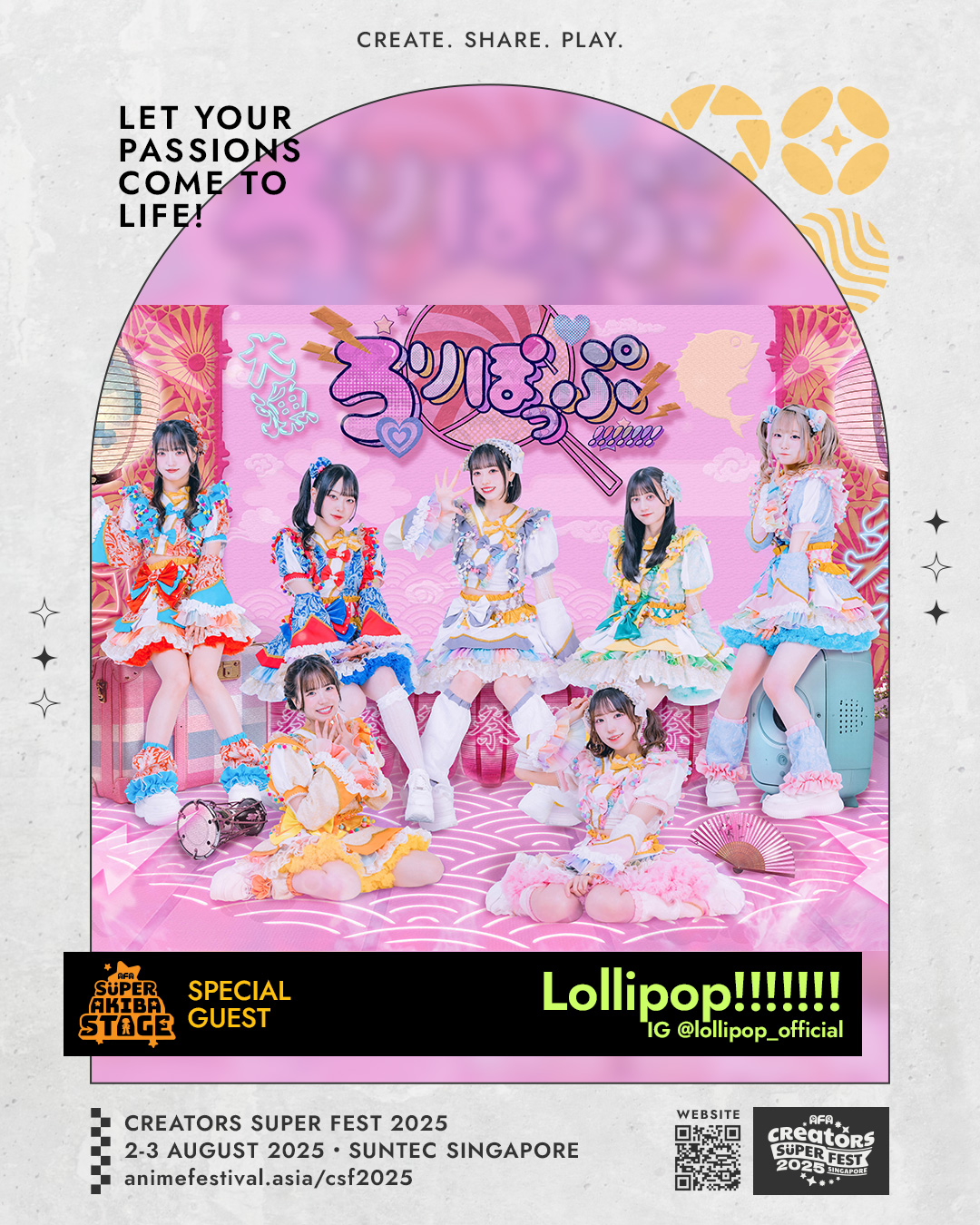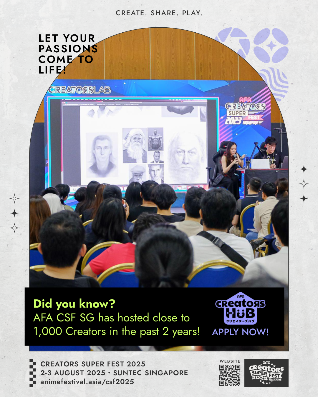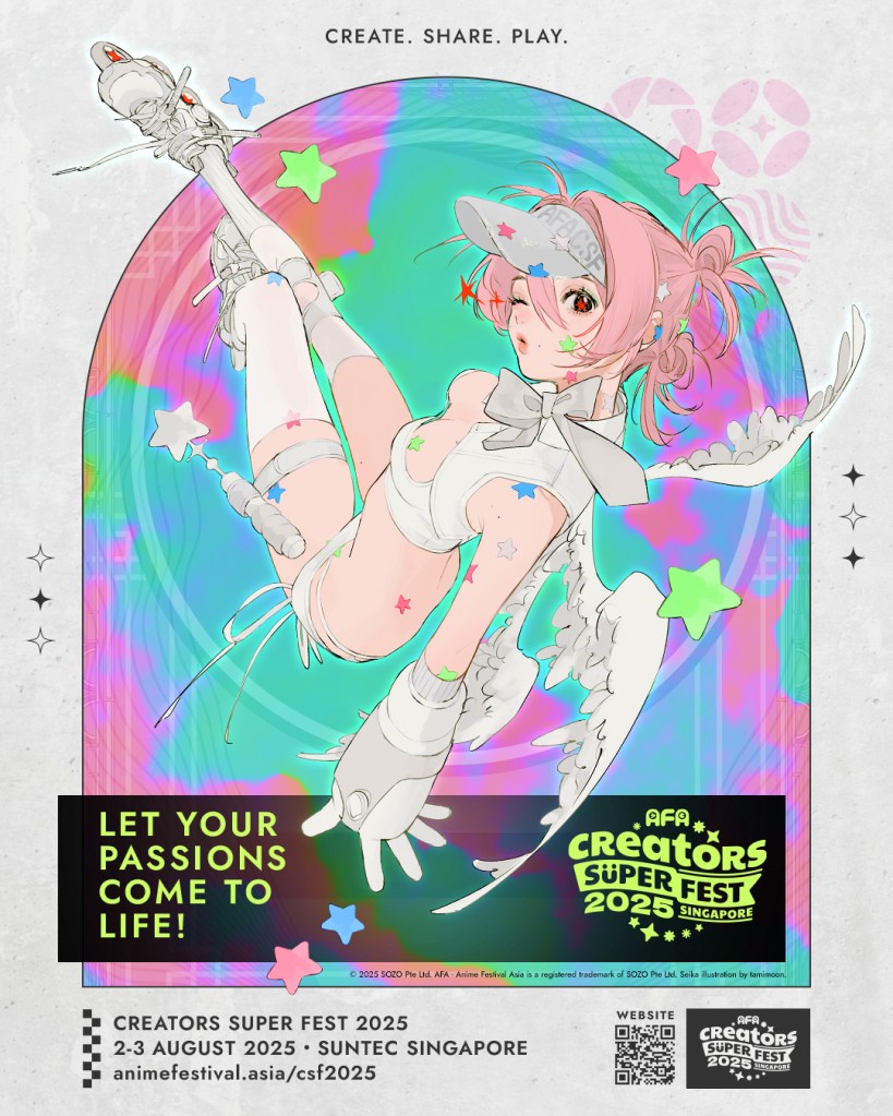 SOZO, organisers of Anime Festival Asia (AFA) Creators Super Fest (#AFACSFSG25), announced the return of the community-focused festival to Singapore on 2 and 3 August 2025. To be held at the Suntec Singapore Convention and Exhibition Centre, the third edition of AFA Creators Super Fest Singapore will showcase three halls of the best creative content, merchandise and more from artists and creators from Singapore and the region.