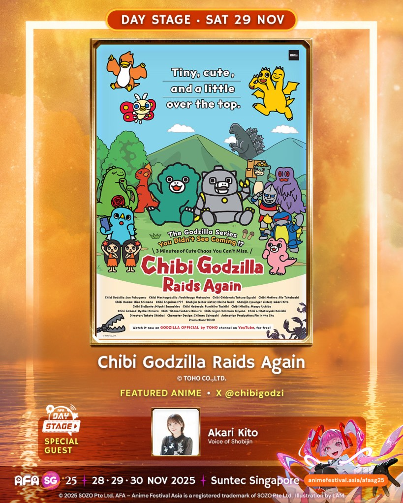With the announcement of the Day Stage segments produced by TOHO animation—Chibi Godzilla Raids Again, Frieren; Beyond Journey’s End, and The Apothecary Diaries—AFA Singapore is thrilled to unveil an exciting collaboration with TOHO animation, in partnership with TOHO Entertainment Asia!