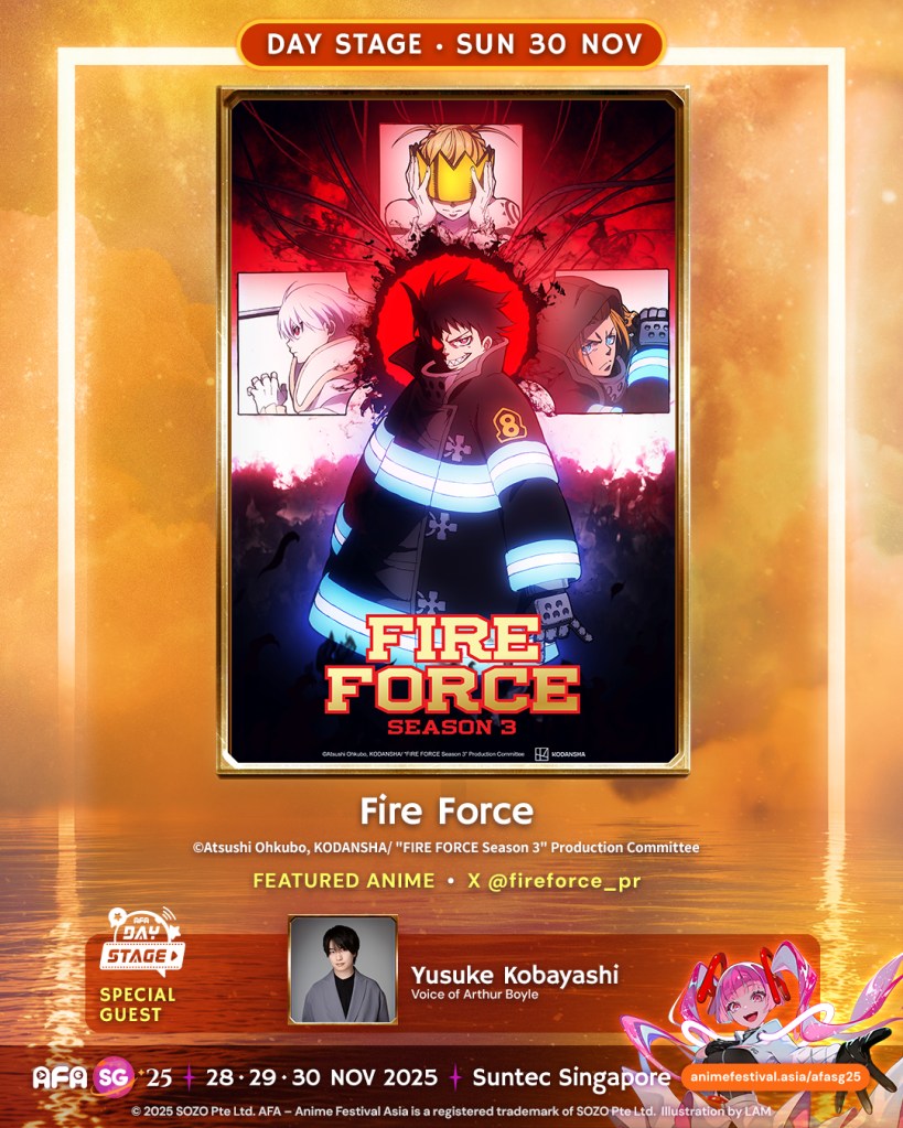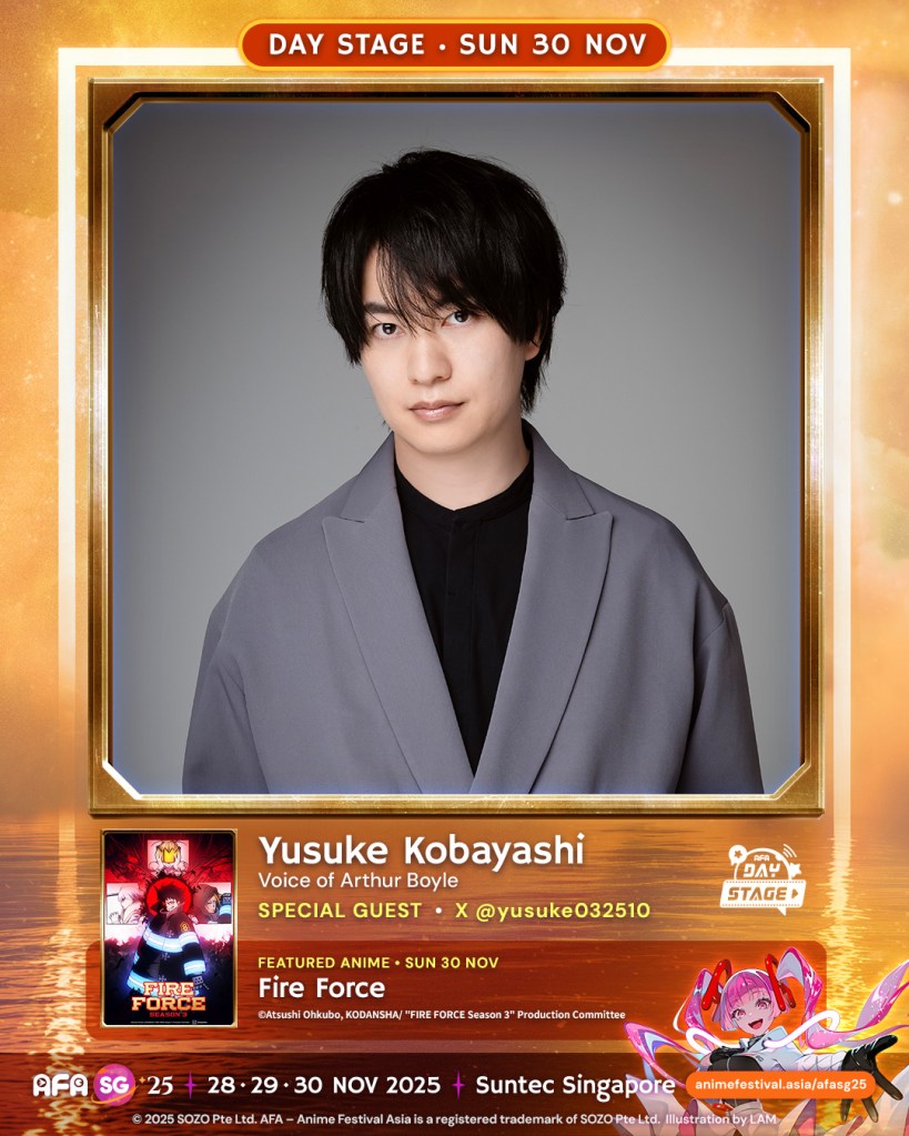Yusuke Kobayashi, the voice of Arthur Boyle, will light up Day Stage for the special “Fire Force” talk show!